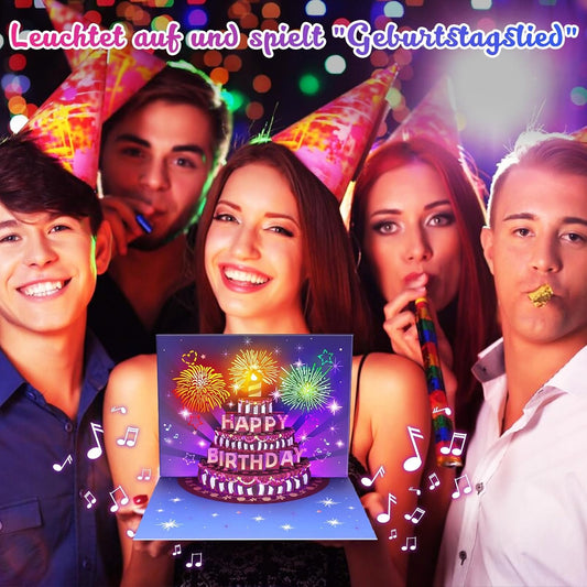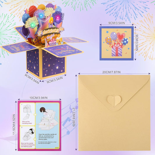 Happy Birthday Card Pop Up Cake Birthday Cards with Music and Light 3D Fireworks