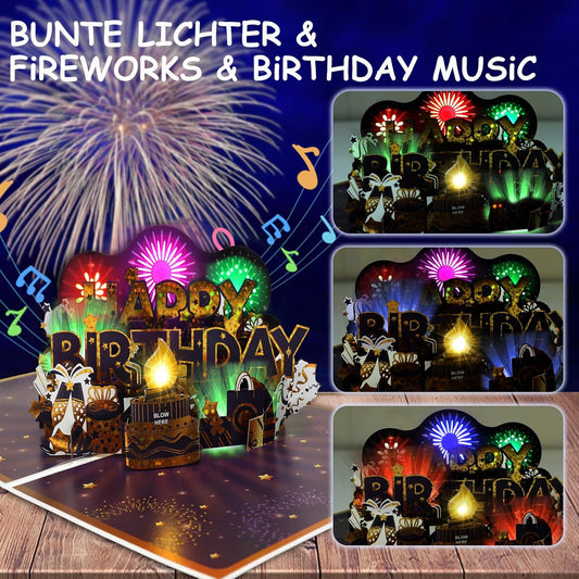 Birthday Card with Music Blowable LED Light Candle 3D Pop Up Fireworks